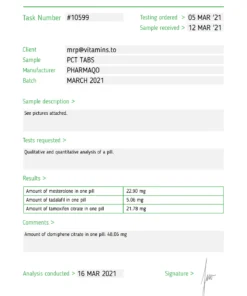 Pharmaqo Labs‘ PCT Tabs is a novel formulation designed to support the body’s natural hormonal balance after an anabolic steroid cycle. These tabs have been precisely engineered to contain four potent ingredients: Tamoxifen Citrate, Clomifene, Tadalafil, and Mesterolone. Each ingredient plays a pivotal role in helping the body to regain its natural state after a steroid cycle, mitigating the potential side effects of anabolic steroids.